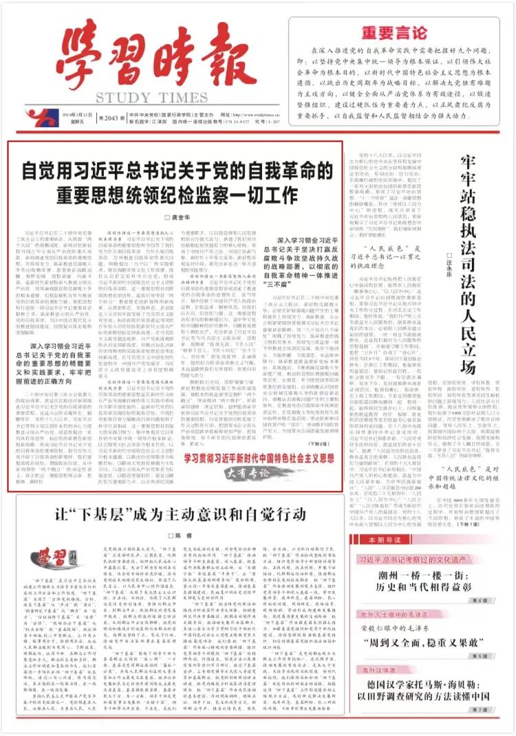 《学习时报》刊发龚堂华署名文章: 自觉用习近平总书记关于党的自我革命的主要头脑统领纪检监察一切事情