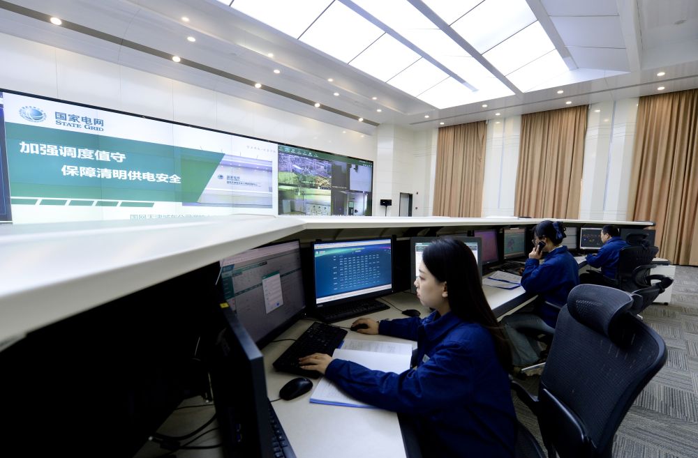 天津城东公司调理值班职员在监测区域电网运行状态。新华社发